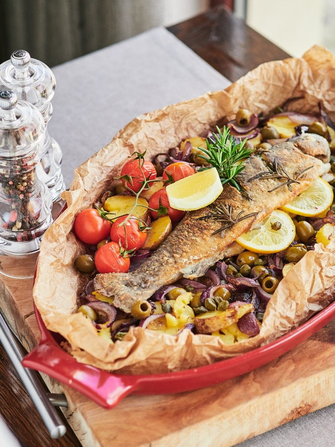 Śniadania i obiadokolacje serwowane są w restauracji, ewentualnie w ogródku restauracyjnym na tarasie hotelu. Śniadania w formie stołu szwedzkiego są bardzo urozmaicone i smaczne – dla każdego coś dobrego, co wbrew pozorom nie jest takie oczywiste nawet w czterogwiazdkowych hotelach. Obiadokolacje serwowane są albo w formie gorącego bufetu (w sezonie i w weekendy, gdy w hotelu jest dużo gości), albo można zamawiać bezpośrednio z karty. Skorzystaliśmy i z jednej i z drugiej opcji – i za każdym razem jedzenie było przepyszne! A ciasta na deser to nie przesłodzona i nie przelukrowana poezja.