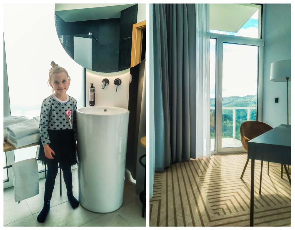 Z całą pewnością wrażenie zrobią na Was stylowe i komfortowe wnętrza. Subtelny, a jednocześnie dopracowany w każdym detalu design, naturalna kolorystyka: biele, beże, szarość. Miękkie tkaniny, różnorodne oświetlenie to tylko niektóre atuty pokoi i apartamentów hotelu. Osobiście uwielbiam obecne tutaj welurowe tapicerki, lejące się (i zaciemniające odpowiednio) zasłony. Przestronna łazienka z wielkim podświetlonym lustrem, a także wykorzystanie drewna, które zawsze kojarzy mi się z ciepłem domowego ogniska – działają wyłącznie na plus.