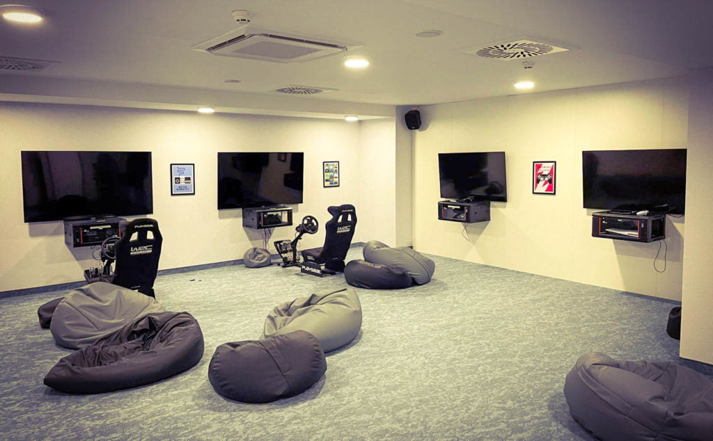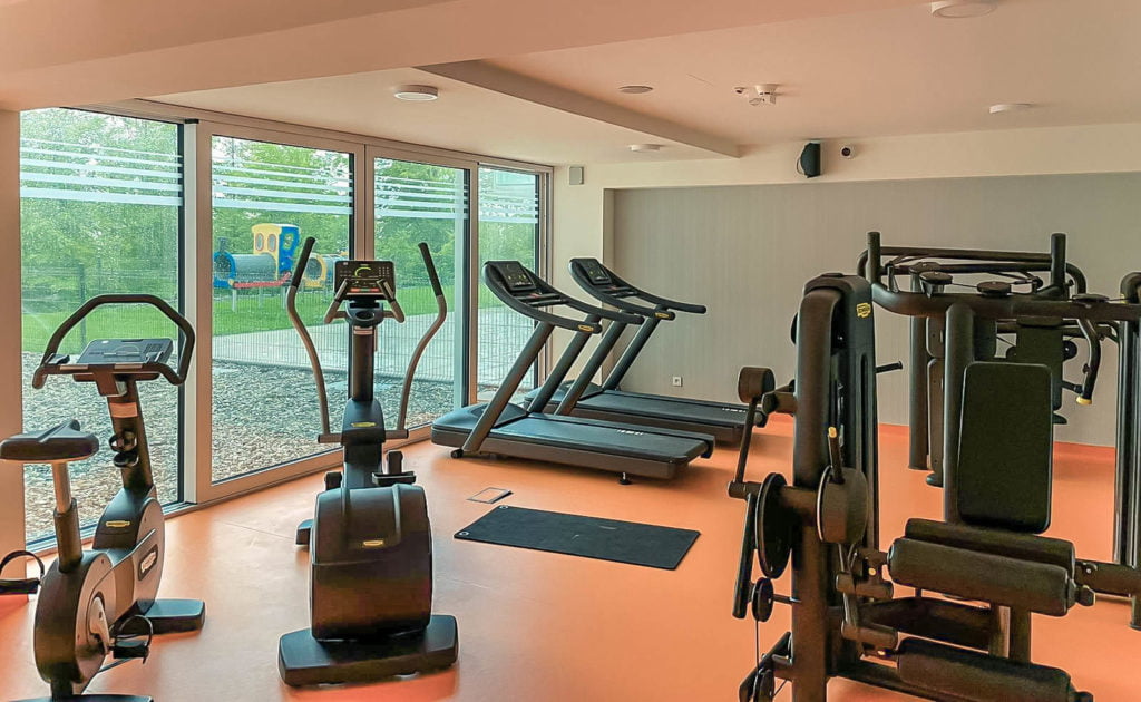 Starsi koledzy (i ich tatusiowie) z wielką radością czas spędzali w sali obok – świetnie wyposażonym Game Roomie lub jak nasz – w sali fitness z widokiem na pejzaż Beskidów.