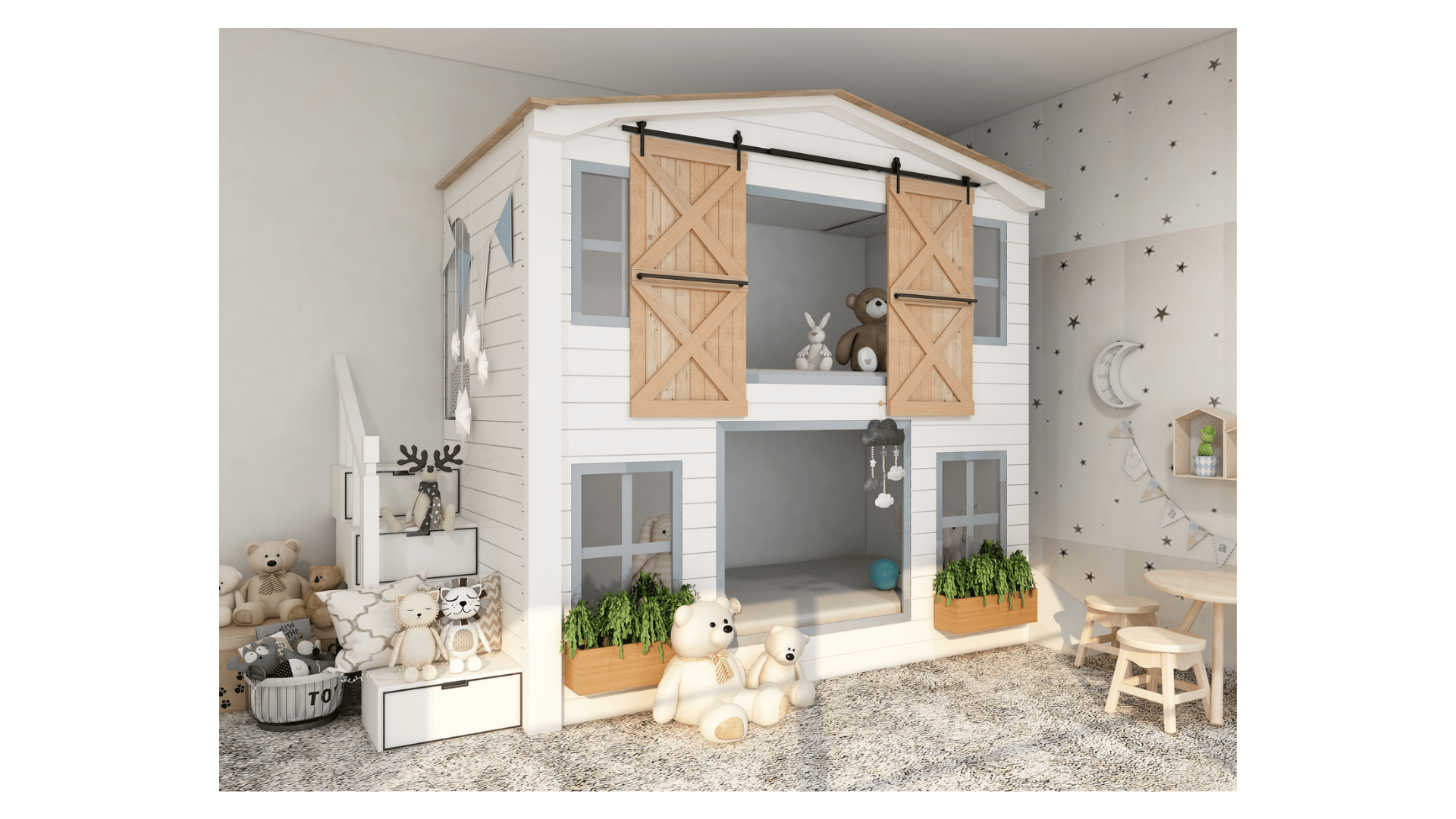 Polecam wymienienie niemowlęcych łóżeczek ze szczebelkami na łóżka „dla starszaków”. Opcji macie wiele – możecie wybierać z szerokiego asortymentu na rynku, a jednym z pomysłów jest przytulne łóżko-domek.