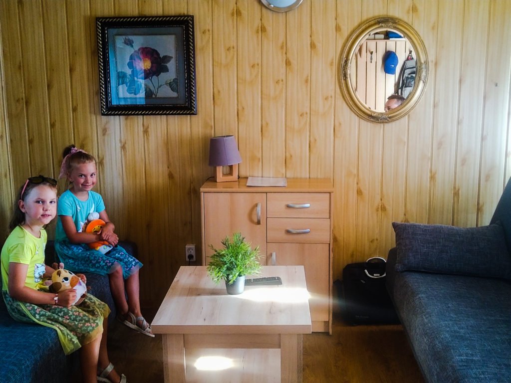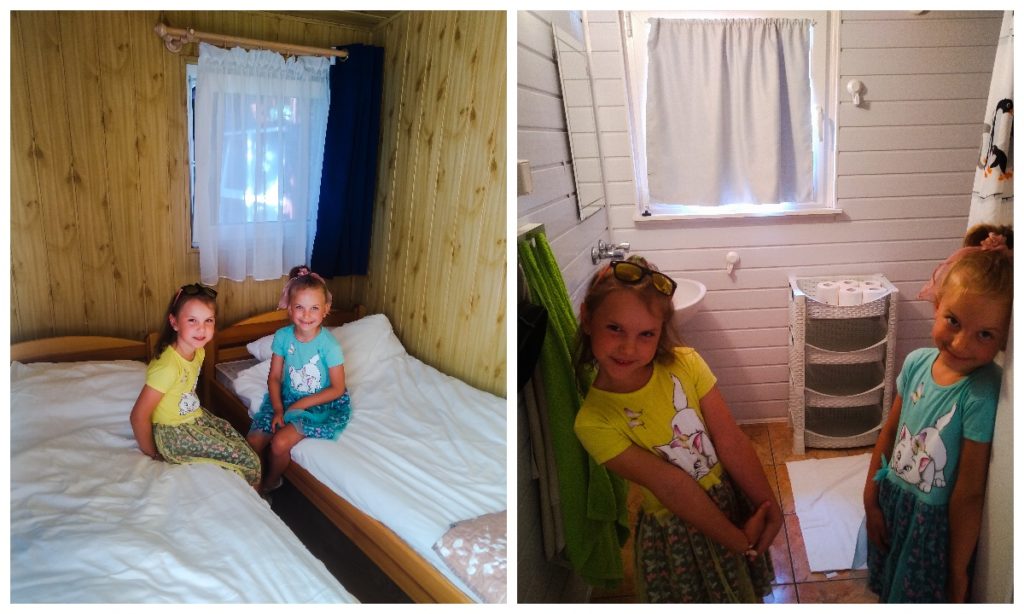 Jeśli chodzi o wyposażenie domków pragnę zaznaczyć, że znajdziecie w każdym z nich wyłącznie czajnik oraz sztućce i naczynia, gdyż pobyty wczasowe obejmują wyżywienie: śniadania i obiadokolacje w formie bufetu szwedzkiego (o nich za moment). Nie musicie jednak zabierać z sobą ręczników, bo te już na Was czekają.