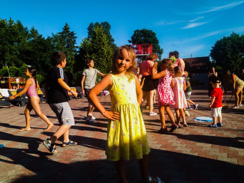 Chcąc przyjechać do Neptuna, wybieracie pobyt tygodniowy lub dłuższy. Już na początku możecie się przekonać, że w tym ośrodku nie będziecie narzekać na nudę, a gospodarzom zależy, by każdy wrócił do domu zrelaksowany i wypoczęty. Starszych powitano więc grillem, młodszych festynem obfitującym w atrakcje takie jak: zamykanie w bańce mydlanej, pokaz baniek ogniowych, spotkanie z Myszką Micki czy szereg zabaw ruchowych i tanecznych. Przyznaję – moje córki były urzeczone.
