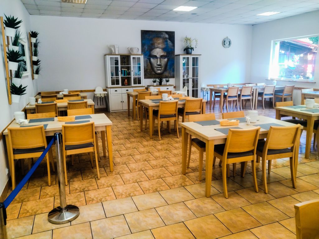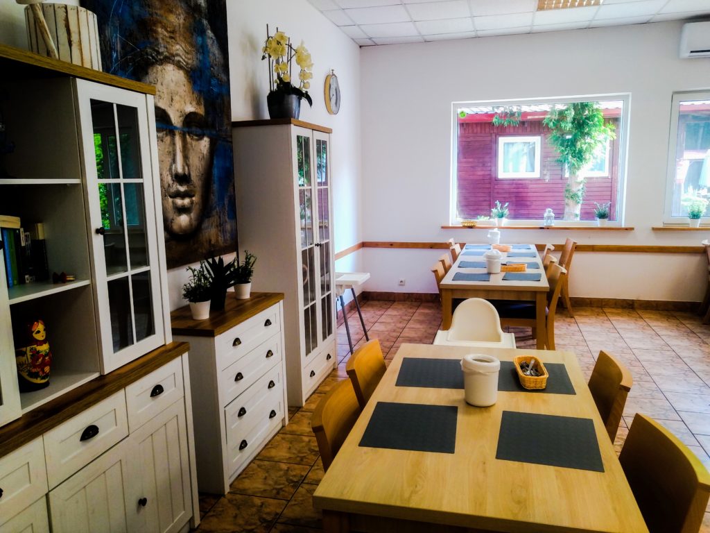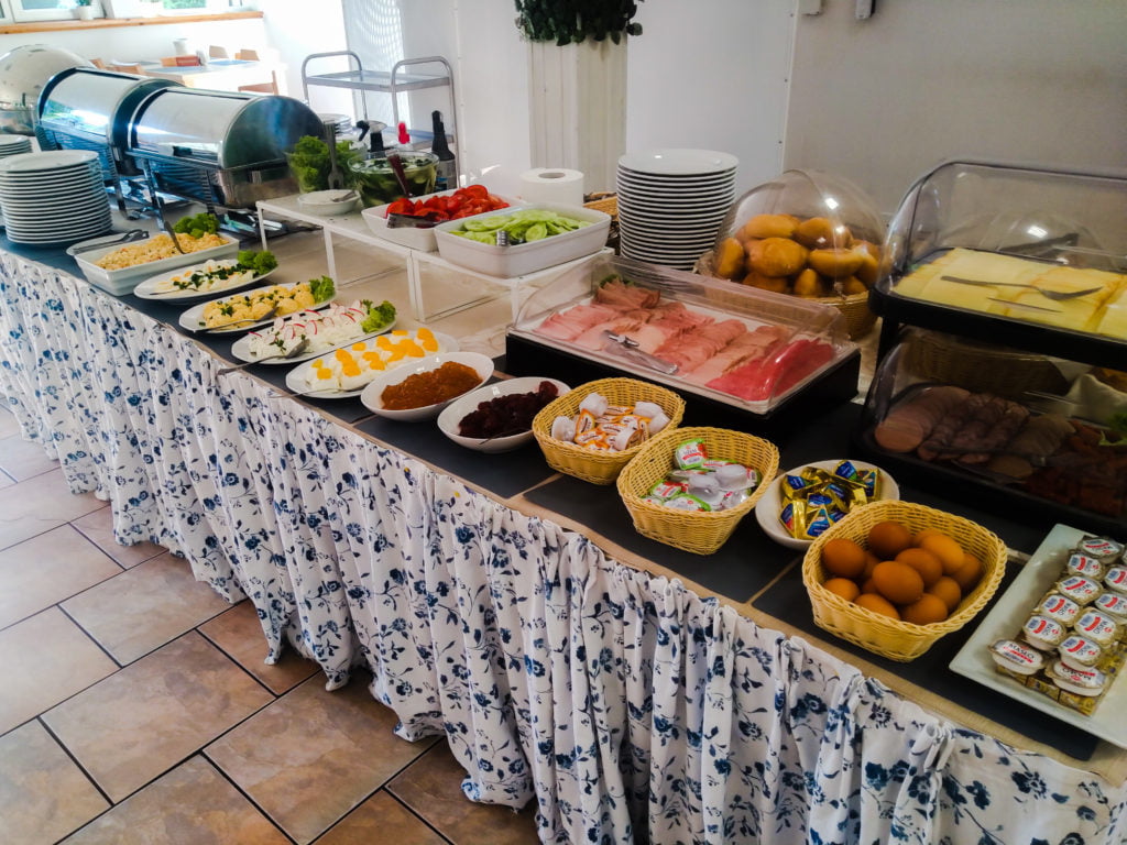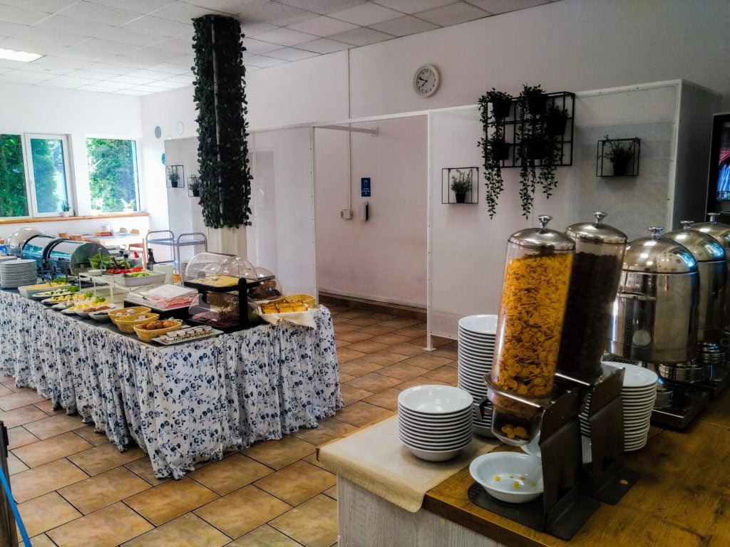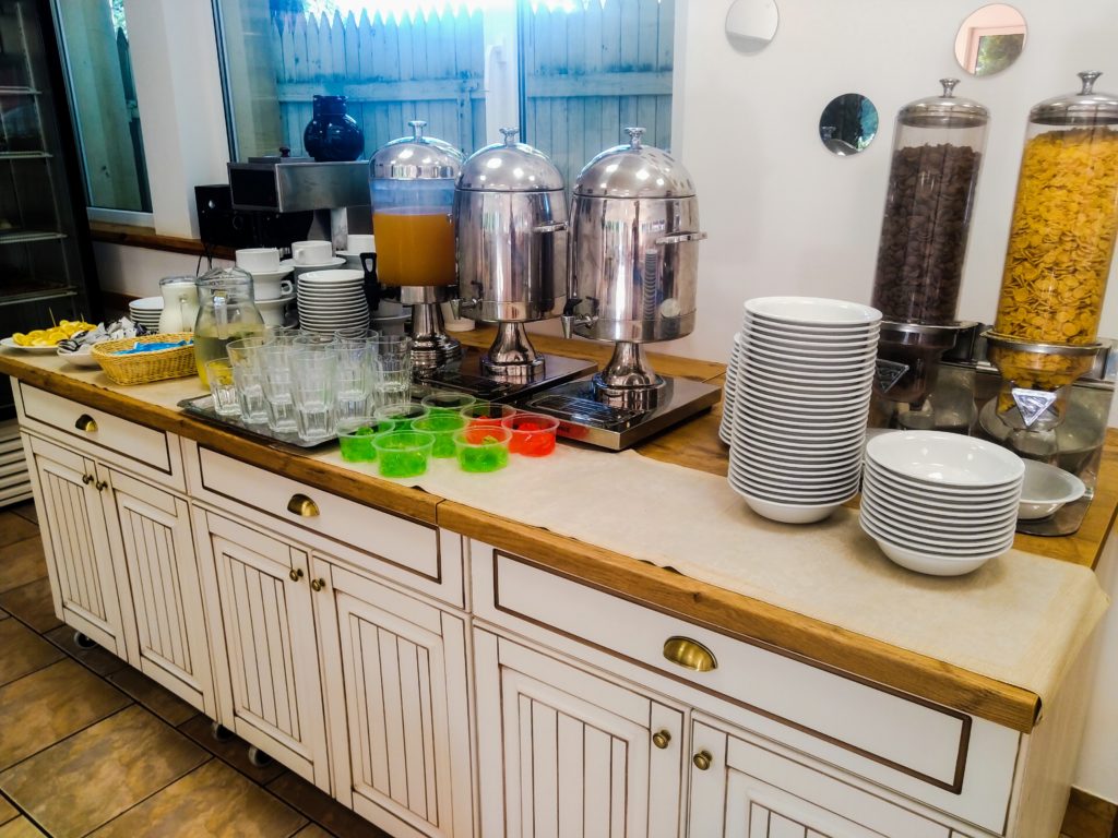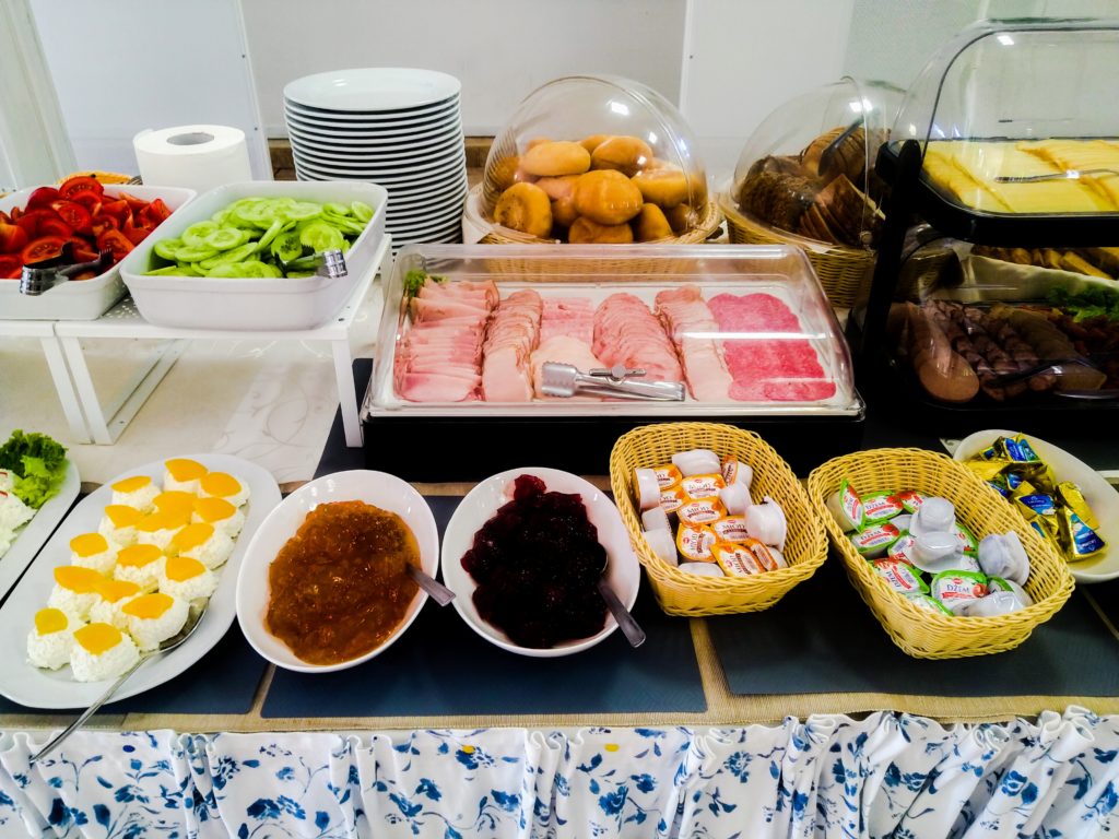 Po moich dotychczasowych doświadczeniach z jedzeniem w ośrodkach wypoczynkowych, spodziewałam się zastać w Neptunie skromne śniadania i serwowane do stolika obiady. Przyznaję, że nie doczytałam, iż oba posiłki są podawane w formie bufetu szwedzkiego. Duży plus dla właścicieli należy się za co dobór potraw – zawsze znaleźliśmy coś, co uwielbiają dzieci. Tak więc na śniadaniu nie brakowało parówek, jajecznicy, ale i pysznych cieplutkich pankejków z dżemem i całego mnóstwa warzyw oraz owoców.
